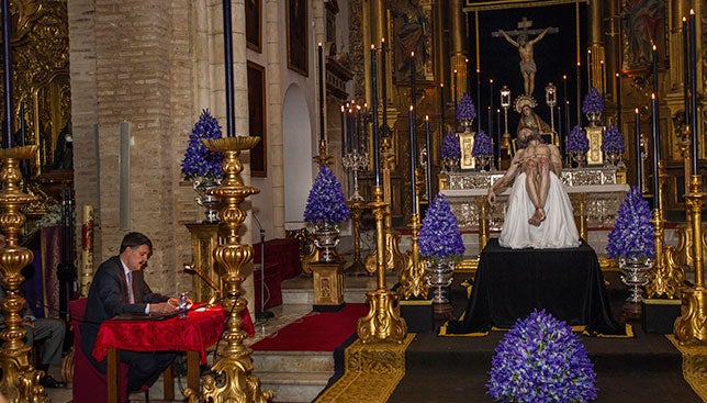 Iniciar sesiónEl redactor jefe de ABC de Sevilla Javier Rubio ofreció el pasado sábado una meditación honda y bellísima ante el Cristo de la Caridad de Santa Marta como pórtico del besapiés.