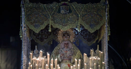 Macarena es una promesa hecha palio. Toda entera, luz de los ojos, música de los oídos, tacto de terciopelo, aroma de belleza, gusto de gloria