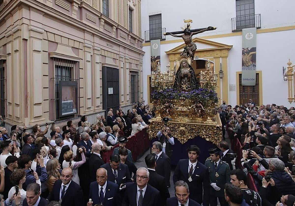 Sevilla podrá admirar al Cristo de la Expiración del Museo y a la Virgen de las Aguas en procesión en un mismo paso, formando una escena del Stabat Mater, una estampa perdida hace más de un siglo, en 1922. El paso del crucificado, en el que irán los titulares, llevarán los candelabros de la hermandad de la Cena de Jerez, que en su día pertenecieron al Cachorro.