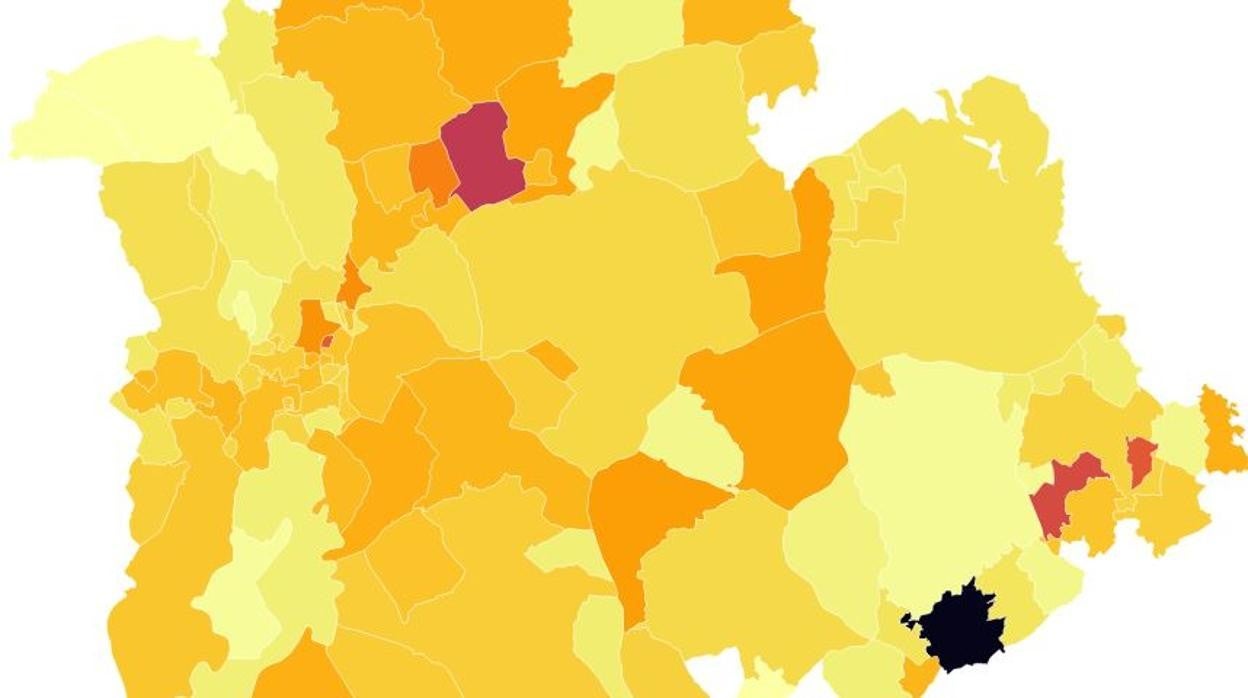 En el Aljarafe hay 1.128 positivos activos en los últimos catorce días, repartidos entre 32 municipios con Covid , que dejan una incidencia acumulada de 288 casos por cada cien mil habitantes en los últimos catorce días.