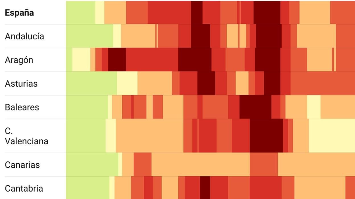 Aragón, País Vasco y Madrid, las regiones instaladas durante más días en peligro alto, extremo o muy extremo