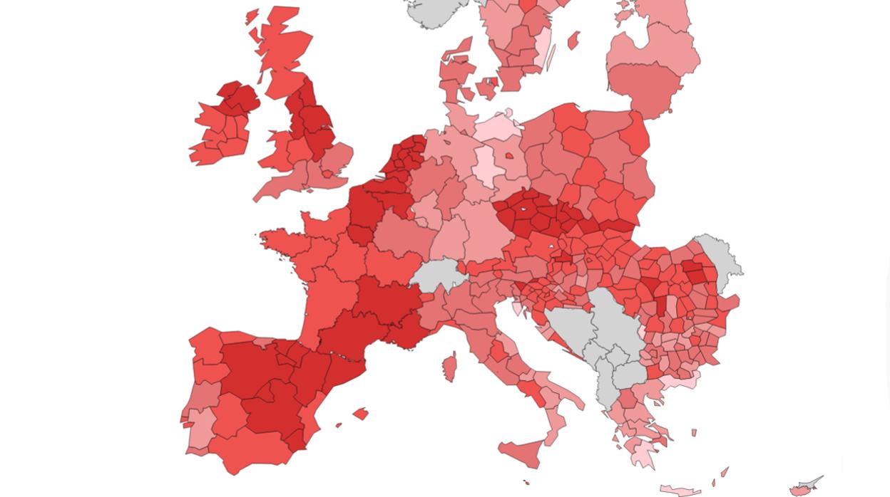 Entre las veinte regiones de la UE con mayor nivel de coronavirus están territorios de Bélgica, República Checa, Francia, Países Bajos y, ya fuera de la unión, Reino Unido. Actualmente, la mayor incidencia está en la región de Bruselas capital, con 864 casos por cada 100.000 habitantes en los últimos 14 días, seguida de Navarra (774).