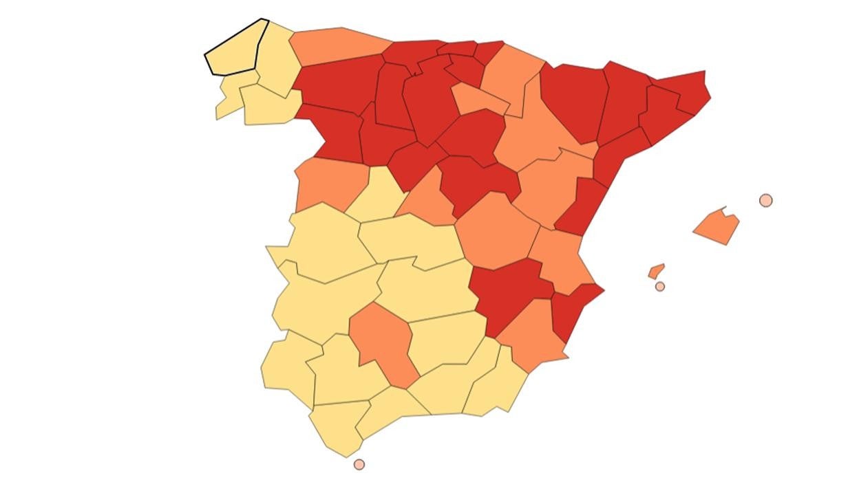 La presión en las UCI empuja a riesgo muy alto al norte y al este de España