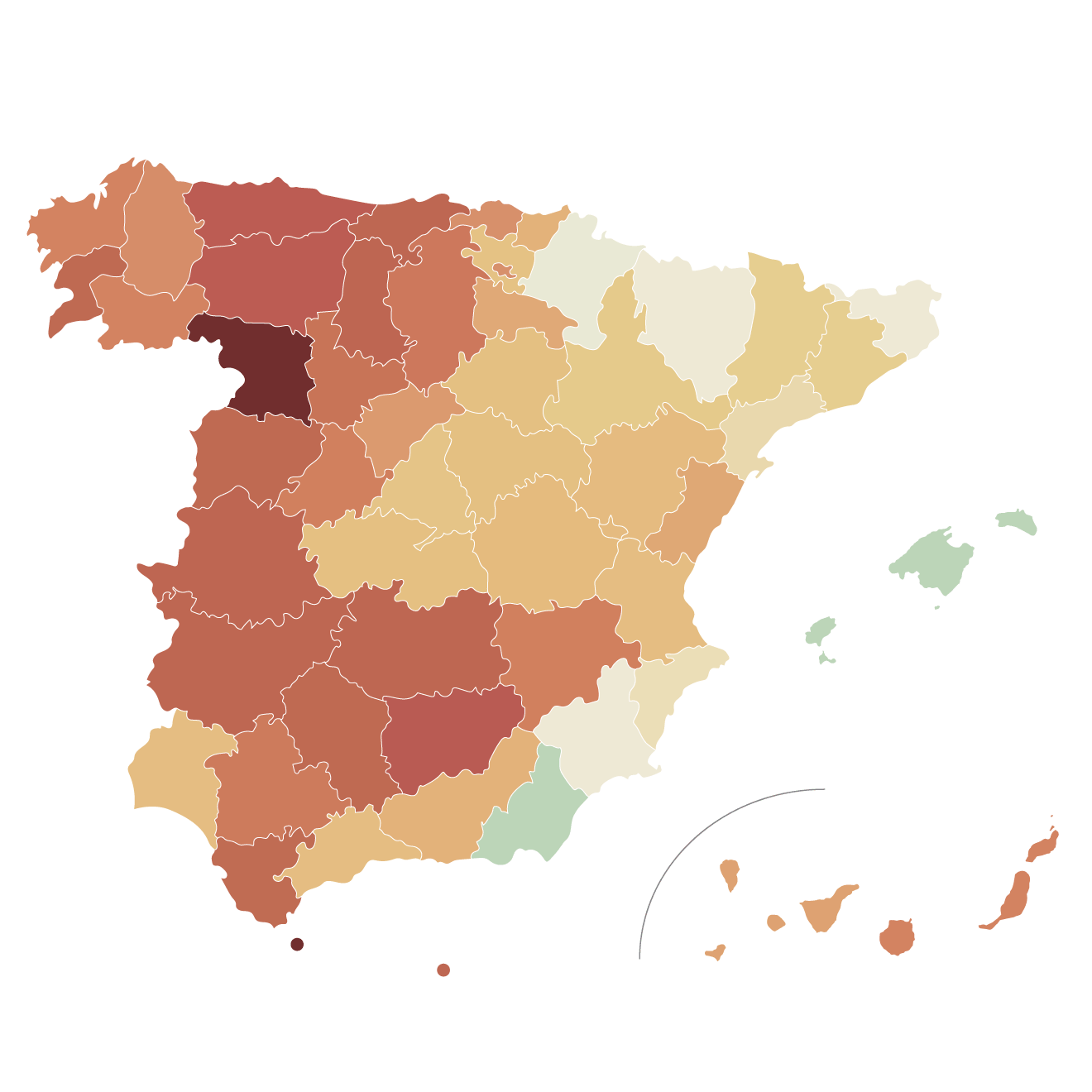 En resumen, señala el informe, «si España ya tiene una demanda educativa notablemente polarizada, cada vez lo estará más: unos pocos puntos (núcleos densamente poblados con perspectivas demográficas menos negativas) concentrando demanda abundante; acompañados de otros muchos puntos con demanda escasa, pero sobre todo dispersa, y en franco declive demográfico».