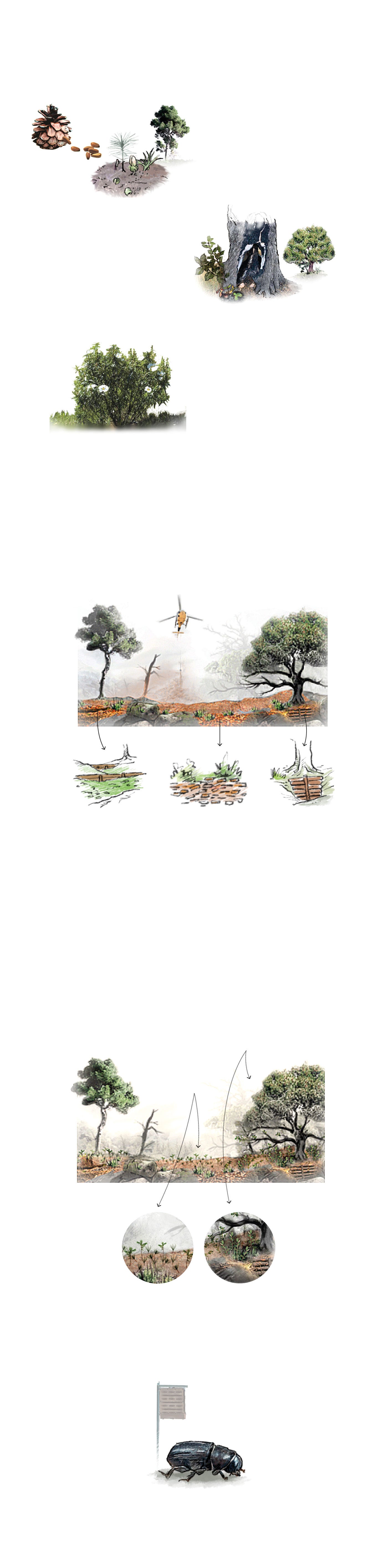 No existe una sola solución para la gestión de los bosques tras las llamas. Cada terreno, cada especie afectada y cada incendio es diferente. Si la zona ha ardido recientemente, el peligro de perder especies es alto. Y cuanto más severo haya sido el fuego, más le cuesta a la naturaleza recuperarse. En estos escenarios de gran devastación la ciencia forestal intenta acelerar el proceso de recuperación.