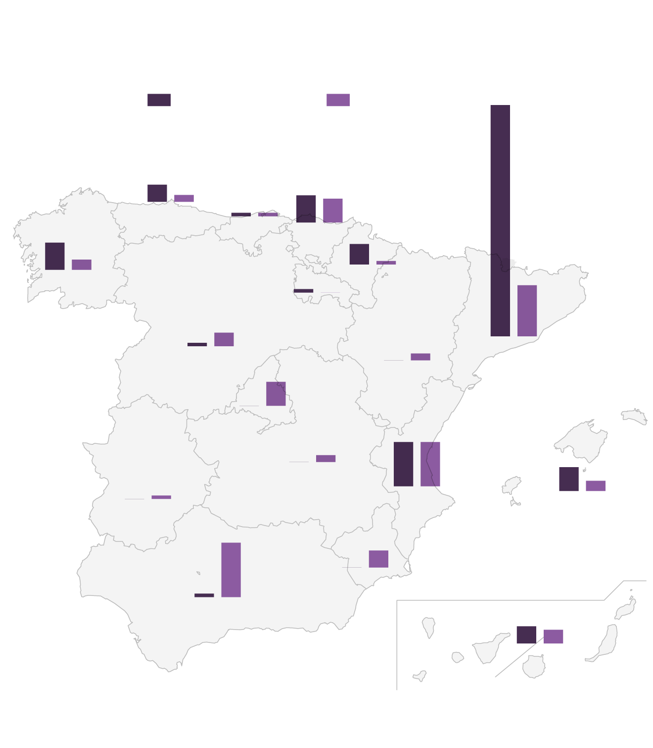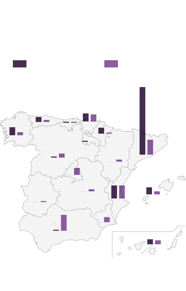 En 2021, el último año del que se dispone de cifras oficiales, abortaron en España un total de 90.189 mujeres. Una de cada cinco (un total de 18.741) lo hizo en Cataluña, con una tasa de 13,45 IVE por cada 1.000 mujeres. Le siguen Madrid (con una tasa del 11,90 de IVE por cada 1.000 mujeres), Baleares (11,56), Asturias (11,50), Murcia (11,46) y Andalucía (11,18). Por contra, Ceuta y Melilla (1,79), Galicia (5,37) y La Rioja (6,17) son los territorios que ofrecen las proporciones más bajas.