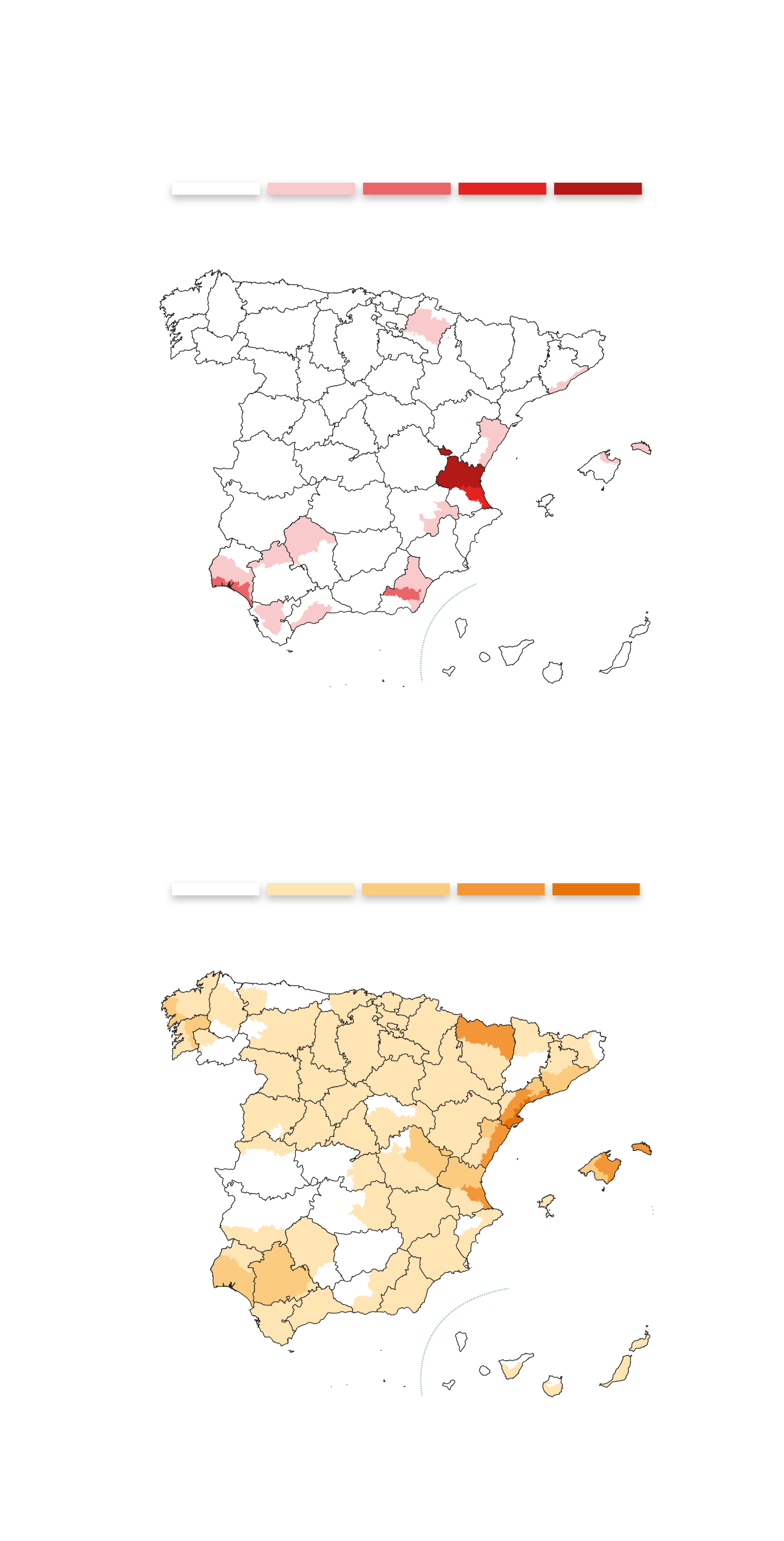 Lo curioso, además, es que es mucho más difícil alcanzar el nivel rojo por lluvias en Comunidad Valenciana que en otras zonas de España, ya que los valores de peligro se adaptan a cada zona. «No es lo mismo la lluvia torrencial cuando cae en el Mediterráneo que en otras zonas de España porque en el Mediterráneo es más habitual», explica Rubén del Campo, portavoz de la Aemet. Así, los niveles de máximo riesgo se alcanzan en el este de Cataluña, Comunidad Valenciana, Murcia y Baleares a partir de los 180 litros por metro cuadrado (l/m2) en 12 horas, pero en el resto de España son 120 l/m2 en 12 horas.
