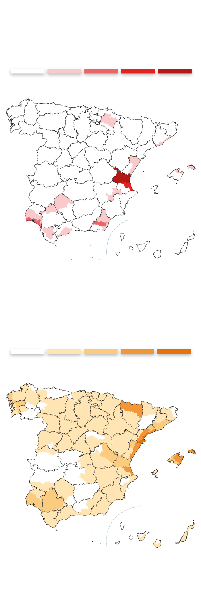 ¿Y qué ocurre en concreto con las lluvias? ¿El riesgo extremo es frecuente? Los datos dicen que no. En los últimos doce meses se han lanzado 48 avisos por lluvias extremas en diferentes puntos de España, de los que 40 han correspondido a la DANA. Es decir, antes del pasado 29 de octubre, solo se había activado ocho veces el riesgo extremo por lluvias, y ninguno concurrió en Comunidad Valenciana.