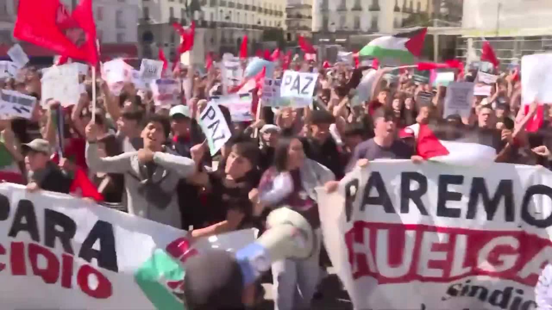 Unos 4.000 estudiantes de enseñanza secundaria y universitaria --según cifras de Delegación de Gobierno-- se han manifestado este jueves en Madrid a favor del pueblo palestino, a iniciativa del Sindicato de Estudiantes, que ha convocado una huelga general estudiantil que lleva por lema: ¡Paremos ... el genocidio, huelga general!