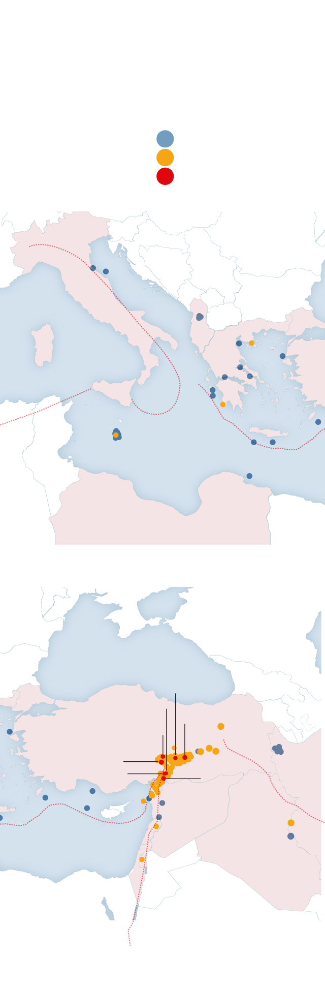 La alerta por maremoto fue declarada el lunes en las costas del sur de Italia e incluso España, con la mirada puesta en cómo se portaban los miles de kilómetros de agua que separan ambos puntos de Anatolia, epicentro del desastre. España dispone de un Plan Estatal de tsunamis desde mayo de 2021, a pesar de que el último gran episodio mortal de este tipo ocurrió en 1755 en la costa atlántica de Huelva y Cádiz, donde murieron cientos de personas por el agua desplazada por el conocido Terremoto de Lisboa, que se calcula que se cobró la vida de entre 60.000 y 100.000 personas entre la Península Ibérica y el norte de África. En el Mediterráneo español ocurrió algo parecido en Almería, en 1522, con 2.500 fallecidos, pero las crónicas de la época no aseguran que se produjera el tsunami, y atribuyen todas las muertes al seísmo. En cuanto al terremoto ocurrido en Turquía y Siria, la alerta emitida el lunes quedó en nada y solo se reportó una alteración del nivel del mar de 12 centímetros en lugares cercanos al temblor.