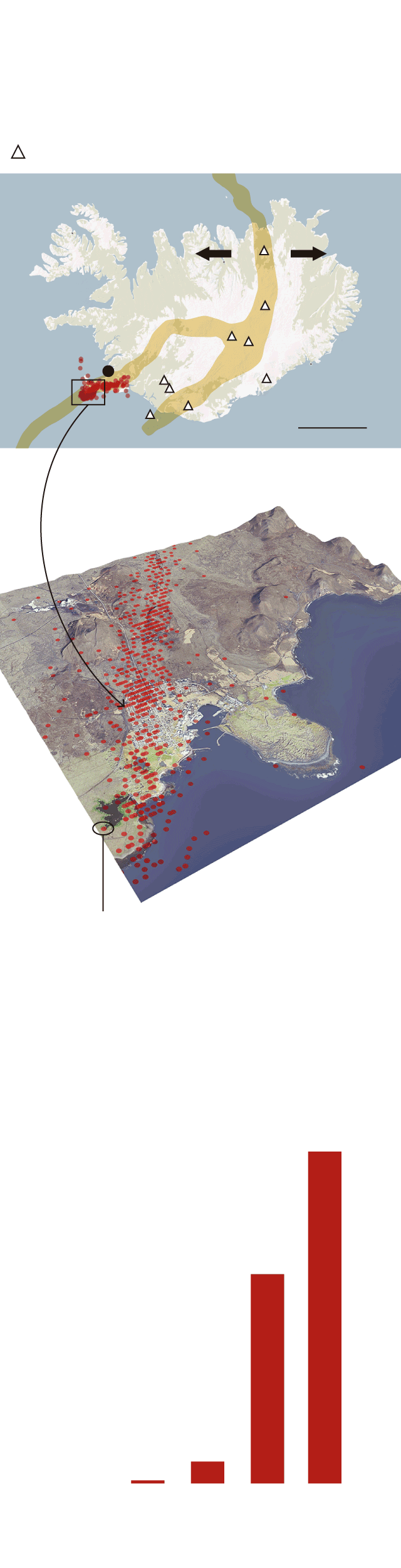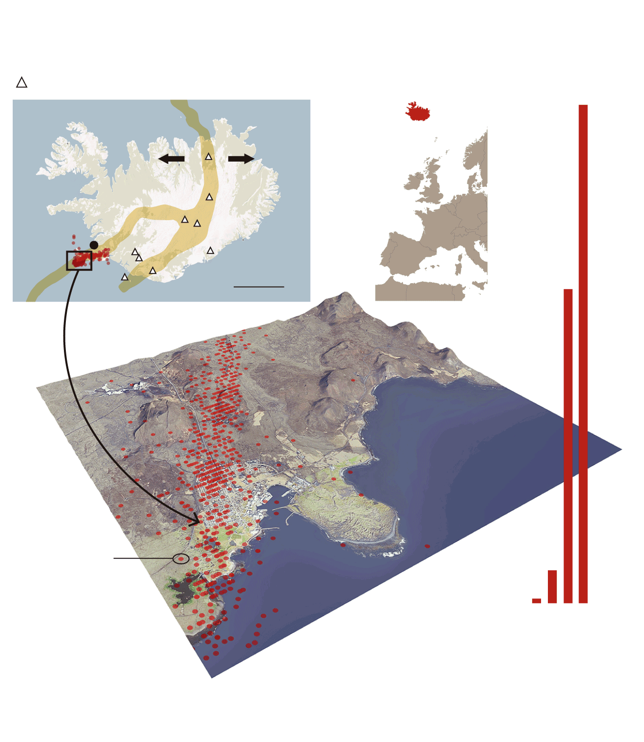 En lo que coinciden los dos expertos es en apuntar a que la lava puede aflorar por cualquier altura de la grieta. «Podría salir por cualquier punto», dice D'Auria. Y aquí Islandia maneja tres escenarios. El primero, que se produzca al norte de Grindavík, en una zona poco poblada y donde generaría menos daños. El segundo, que aflore en mitad de la ciudad, generando grandes daños materiales. El tercero, que la lava emerja ya en el mar. Y si esto ocurre cerca de la costa, «podría ser una erupción explosiva, que afectaría al norte de Europa como en 2011», dice el experto de Involcan.