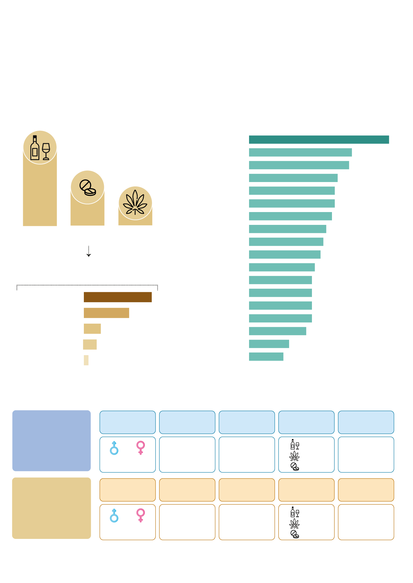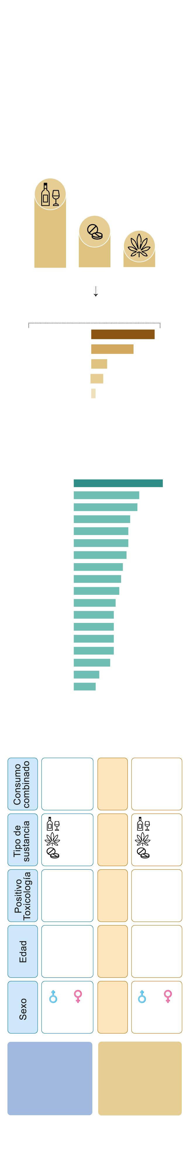 Por sustancias, la droga más detectada fue la cocaína (63,2%), seguida del cannabis (49,4%). En cuanto a los consumos asociados de alcohol y drogas, los de mayor prevalencia fueron los de alcohol y cocaína (46,1%), y de alcohol y cannabis (31,4%).