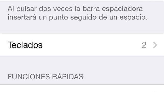 Aunque no es realmente un truco, activar el teclado para utilizar este tipo de caracteres es posibles, es fácil pero no es intuitivo localizarlo. Para ello, hay que ir a Ajustes/General/Teclado.