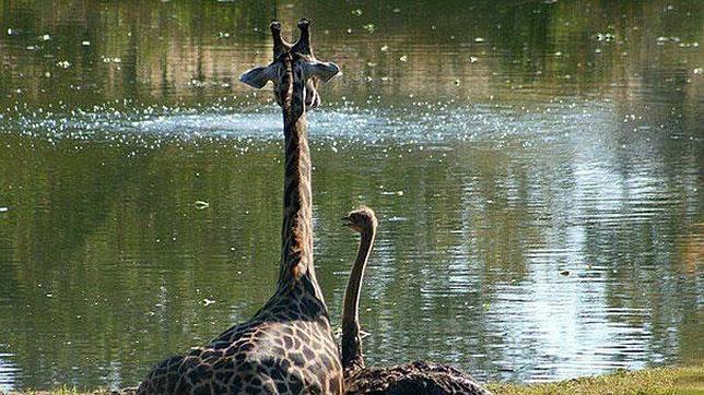 Los jardines Busch, en la estadounidense bahía de Tampa, son suficientemente grandes como para que Bea la jirafa y Wilma el avestruz puedan vivir a sus anchas, separadas una de la otra. Pero se llevan tan bien que prefieren hacerse compañía y compartir confidencias. Ahí las tienes, disfrutando de una tarde de relax junto al lago.