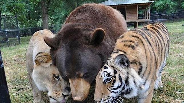 Esta imagen parece propia de «El libro de la selva»... porque sus protagonistas se llaman Leo, Baloo y Shere Khan. La principal diferencia es que aquí no hay malvados ni enemigos. Los tres están muy unidos tras sobrevivir juntos a los maltratos de un narcotraficante, antes de ser rescatados y llevados al santuario animal «Arca de Noé».