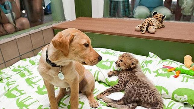 El perro Mtani y el guepardo Kasi se hicieron amigos cuando llegaron, siendo prácticamente recién nacidos, a la misma reserva. A medida que fueron creciendo, el felino fue mostrando algo más de interés por sus iguales; pero como se puede apreciar en esta foto más actual, todavía hoy se llevan estupendamente.