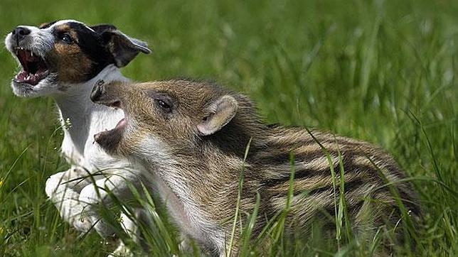 Así de bien se lo pasan correteando y jugando la perra Candy y el jabalí Manni. Una familia alemana encontró al cerdo salvaje en el bosque, abandonado y muriendo de hambre; así que decidió darle cobijo hasta que se recuperase. Su otra mascota, un Jack Russell Terrer, enseguida vio en él a un fantástico compañero de juegos.