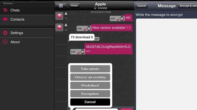 Por ejemplo, este servicio creado a principios de 2013 permite que si un usuario se equivoca de persona al escribir un mensaje solo se necesita borrarlo del dispositivo remoto para que la persona de destino no pueda leerlo. Además de ello, la aplicación cuenta con una función de encriptado gracias a la cual podremos enviar datos cifrados que nuestro receptor desencriptará mediante una clave secreta. Está disponible para iOS y Android.