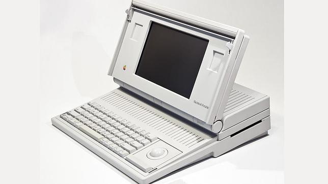 Con una batería como fuente de alimentación y un diseño compacto, el primer portátil de Apple llegó en 1989, pensaba hasta siete kilos (hoy en día sería una exageración) y contaba con una rueda como controlador situada en la parte derecha del teclado (trackball) extraíble. El portátil llegó con 1 MB de memoria RAM soldada en la placa base. Tuvo una gran acogida por parte de la prensa especializada pero resultó un fracaso de ventas, sobre todo, por culpa de un problema en la batería. Fue descatalogado en 1991.