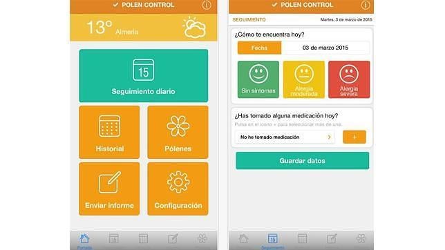 Desarrollada por la SEAIC y Almirall, Polen Control permite realizar el seguimiento de la evolución sintomática en pacientes, con la finalidad que el profesional médico pueda cruzar y relacionar dichos datos con los niveles polínicos existentes. Polen Control permite realizar un mejor seguimiento y diagnóstico de las alergias debidas al polen ambiental, especialmente en pacientes que presentan polinosis. El paciente podrá realizar el seguimiento diario de su patología a través de su móvil, para posteriormente enviarle un informe en el que los datos de su paciente se cruzarán automáticamente con los datos de los niveles polínicos ambientales.
