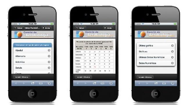 La versión móvil de la web de la SEAIC permite conocer de manera gráfica los datos de polen de una determinada región, actualizados en tiempo real así como los Gráficos de Concentraciones y los Datos Numéricos.