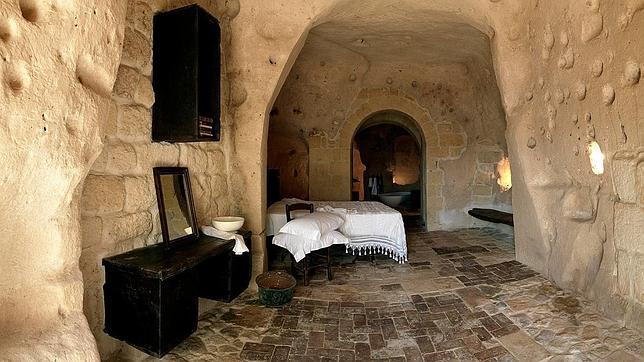 Matera, en el sur de Italia, tiene un casco antiguo singular, con las casas excavadas en la roca caliza. Los Sassi de Matera (Piedras de Matera) son Patrimonio de la Humanidad de la Unesco desde 1993, lo que reconocía un ecosistema urbano único, el modo de vida de las cuevas. En este entorno tan especial se halla el hotel Le Grotte della Civita, un destino romántico y diferente. Son 21 cuevas, que pueden visualizarse una forma muy gráfica aquí. Como se ve en la foto, la decoración es sencilla, lo que subraya el inigualable entorno. «En cuanto al interior y el mobiliario -aseguran- era una prioridad la recuperación de los elementos originales, un mobiliario atemporal: camas, armarios, cómodas, cofres... Precio: a partir de 200 euros la habitación..