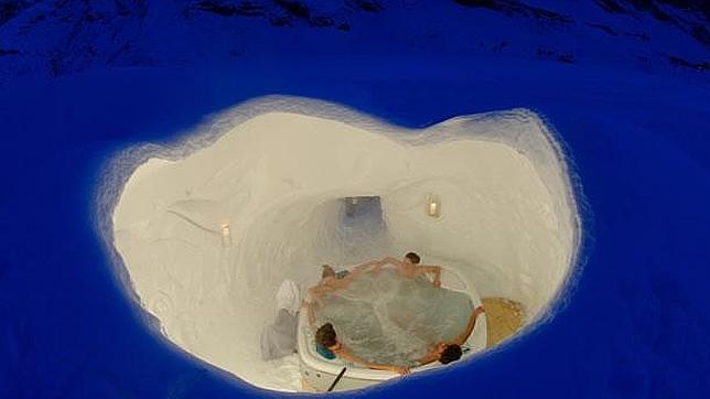 Este hotel construido en 2008 aporta en su oferta una excelente manera de combinar el bañador con los los deportes y otras actividades de invierno. Está situado a 2.350 metros sobre el nivel del mar en la Coma III de la estación de esquí de Grandvalira, el dominio más grande de los Pirineos, y ofrece una vista impresionante de las pistas del Grau Roig con la alternativa cercana de Andorra la Vella a unos 25 kilómetros del hotel. El bañador y el gorro son imprescindibles, pues dos de los nueve iglús que constituyen el hotel disponen de baño privado y uno de ellos, la suite romántica con bañera de hidromasaje, destaca por disponer de un techo abierto al exterior lo que permite observar el cielo estrellado y disfrutar de un jacuzzi privado. La estancia incluye un aperitivo, cena en el restaurante del Iglú (fondue de queso) y té o agua y desayunos en el restaurante Tres Estanys, en Grau Roig. Y las camas, que podrían preocupar a más de uno, están equipadas con materiales especiales para soportar condiciones extremas pero por si acaso los clientes también reciben un saco ártico de expedición para dormir junto con unas sábanas de algodón especial desechables por lo que no se pasa frío . Además las habitaciones están protegidas con pieles de cordero. Todos los años, en diciembre, se construye este hotel de hielo –siempre mantiene una temperatura interior de 0 grados- que acaba derritiéndose con la llegada de la primavera cuando cierra el establecimiento.