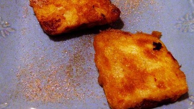 Una vez hecha la masa, la extendemos en una fuente para que se enfríe: el espesor será de un centímetro. Ya fría, la cortamos en cuadros, los pasamos por la harina y los huevos (muy batidos) y freímos en aceite muy caliente hasta que se doren.