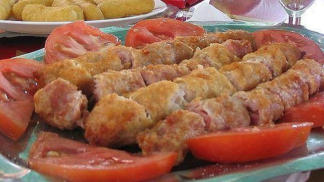 Receta: Ablandamos los filetes con una maza. Los dejamos reposar un poco mientras batimos el huevo. Disponemos sobre cada filete una loncha de jamón serrano y dos porciones de queso. Lo enrollamos todo junto. Pasamos el «rollo» por el huevo batido y pan rallado. A continuacin freímos en abundante aceite muy caliente hasta que esté dorado. Retirarmos el exceso de aceite con papel absorbente y acompañamos con ensalada o patatas fritas.