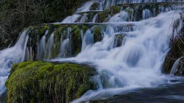 No hay un nacimiento más fotogénico y aparatoso que el del torrente que surge de la cueva del Agua, justo encima de las casas de Orbaneja del Castillo. Una corriente que, nada más ver la luz, atraviesa el pueblo a toda velocidad y se precipita al Ebro en una cascada de 25 metros, brincando y deshaciéndose en mil hebras sobre la musgosa roca tobácea. Todo esto ocurre, para más maravilla, en un recodo del cañón del Ebro, el gigantesco y serpenteante foso de 200 metros de profundidad que ha excavado el gran río ibérico en los páramos calizos del norte burgalés.