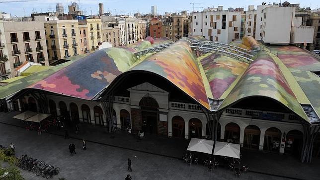 iNéS BAUCELLS Otro de los grandes mercados de Barcelona, situado a escasos metros de la Catedral. Su cubierta ondulada y multicolor, obra de los arquitectos EnricMiralles y BenedettaTagliabue, es uno de los elementos más característicos y fotografiados del barrio Gótico. Este original diseño (tanto por dentro como por fuera) convive con las tradicionales paradas de alimentación de toda la vida. Así, turistas y vecinos del barrio, comparten un mismo espacio donde la gastronomía es la protagonista. La oferta es amplia y variada: frutas y verduras de la huerta catalana, puestos de legumbres, carnes, pescados, salazones y sobre todo muchos embutidos y quesos. En su interior, además, encontramos un restaurante muy recomendable, Cuines de Santa Caterina, donde los fogones y los cocineros están a la vista de los comensales.