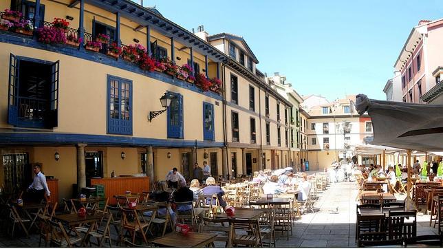 Después de visitar el museo, reanudamos nuestro paseo por la calle Rúa y por su prolongación, Cimadevilla, una de las arterias más conocidas de la ciudad, llena de casas nobles y burguesas del siglo XIX, que recuerda intensamente el ambiente novelado por Clarín en La Regenta, donde aparece con el nombre de Encimada. Pasamos por debajo de la torre del Reloj del Ayuntamiento hasta llegar a una amplia plaza flanqueada por edificios con soportales. Es la plaza de la Constitución, aunque los vecinos la siguen llamando plaza del Ayuntamiento. Para solucionar cualquier duda que tengamos, aquí hay una Oficina de Turismo.
