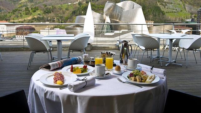 Desde la azotea del hotel Silken Domine Bilbao se disfrutan de unas vistas privilegiadas al Museo Guggenheim y a la ría de la ciudad. Frutas, zumos naturales, embutidos de la zona y platos calientes elaborados al momento por Gartzen Sainz hacen inolvidable esta experiencia matutina.