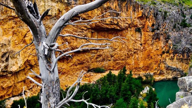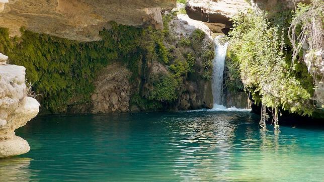 Chulilla es un pueblo de postal que se apiña como un blanco rebaño en la ladera del cerro del Castillo, junto al foso natural del río Turia, que discurre encañonado entre paredes de 160 metros de altura convertidas hoy en uno de los santuarios de la escalada deportiva en España, con más de 500 vías. Allí, al pie de los paredones, con sólo caminar media hora desde el pueblo, se descubre el Charco Azul, un remanso de aguas tersas que duplica como un espejo la belleza de este paisaje vertical de pura roca. El Charco Azul es un buen lugar para refrescarse y para recordar otros tiempos, cuando el río corría libre, sin presas que lo contuvieran, y la madera de la sierra era transportada hasta la ciudad de Valencia flotando sobre sus aguas. Al llegar a esta angostura, donde las altas paredes casi se tocan, se formaban aglomeraciones de troncos y no pocos gancheros o madereros, al tratar de deshacerlas, perdían la vida, razón por la cual se construyó una ermita en las inmediaciones. La ruta del Charco Azul es una de las nueve sendas autoguiadas que recorren el entorno de Chulilla. Empieza y acaba en la plaza de la Baronía, la principal del pueblo, está bien señalizada y es muy fácil, ideal para hacer con niños.