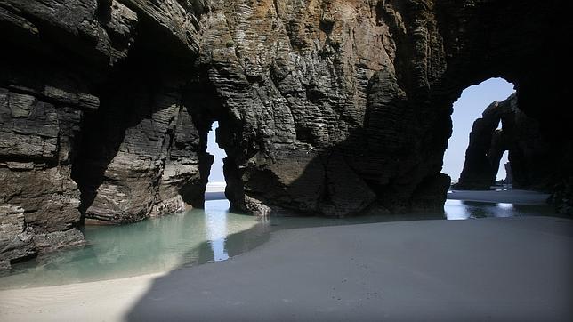 Situada en la provincia de Lugo, debe su nombre -Las Catedrales- a que los acantilados han sido erosionados por el mar conformando un conjunto de bóvedas y arcos de más de treinta metros de altitud que se asimilan al interior de una catedral. Cuando baja la marea se puede pasear por debajo de la bóveda natural.