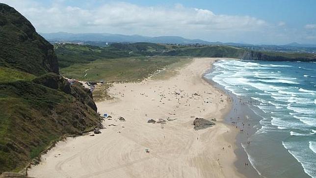 La imagen aérea de este entrante de mar nos da una pista sobre lo peculiar de esta playa, desde cuyas arenas no se llega a divisar el mar sobre todo en momentos de bajamar. Rodeada de verdes praderas y rocas, sus aguas color esmeralda están resguardadas entre acantilados, lo que la convierte en un lugar idóneo para que los niños jueguen y se bañen sin peligro alguno.