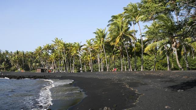 Playa de Punaluu También Hawaii cuenta con sus arenas negras, en este caso en la playa de Punaluu. Una playa que es muy especial, ya que las tortugas marinas depositan sus huevos en ella.