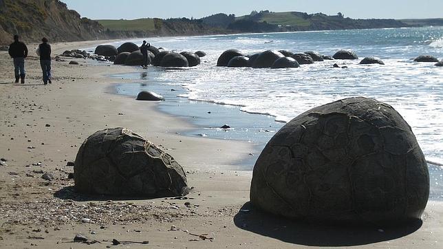 Conocidos como Moeraki Boulders, estos grandes óvalos están creados a partir de sendimentos marítimos, y su forma se debe a la erosión del oleaje. Estudios realizados en ellos demuestran que provienen del Paleoceno, es decir, que tienen al menos 56 millones de años.