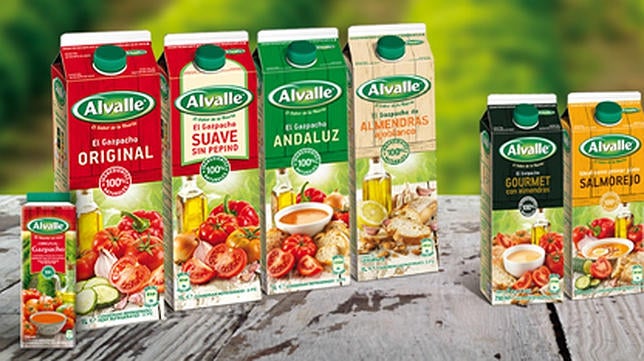 Marca pionera en los gazpachos envasados, Alvalle ofrece una amplia gama de estas sopas frías con un nivel de calidad muy aceptable, tanto por su sabor como por su densidad. El más vendido es el llamado «Original», con nada menos que un 93 por ciento de vegetales frescos de calidad (tomate, pepino, ajo y cebolla), aceite de oliva virgen extra, vinagre de vino, sal y zumo de limón. Sin gluten, con un color intenso y una textura y un sabor equilibrados y muy agradables. El «Suave» es similar, pero sin pepino, y bastante más flojo que los otros. Y el «Receta Andaluza», más tradicional, incorpora el pan, un ingrediente habitual en los gazpachos que les aporta una textura más consistente y un sabor más intenso. En la gama hay incluso uno que incorpora almendras a la receta básica.