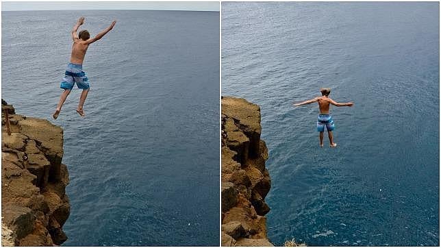 El saltador checo Michal Navratil, en Vila Franca do Campo, Azores (Portugal) - Romina Amato/Red Bull Content Pool Michal Navratil, de la República Checa, salta en la foto que ven sobre estas líneas desde 27,5 metros de altura, en el islote de Vila Franca do Campo, en Azores, el 19 de julio del pasado año. Los monolitos de piedra volcánica situados en esta zona, en el centro del Atlántico, son perfectos para explorar los límites del vértigo. El islote, reserva natural desde 1993, está situado a un kilómetro del pueblo del mismo nombre, aunque durante el verano hay conexiones regulares para presenciar los saltos o intentarlos.