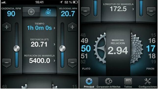 Una aplicación diferente a las mencionadas hasta ahora. Bike Gear Calculator -gratis durante un tiempo para dispositivos Apple y Android- es una calculadora de marchas que permite seleccionar la cadencia, el tamaño de llanta, la longitud de manivela y otros detalles para determinar la relación de marcha adecuada, el índice de aumento, la velocidad o las rotaciones de pedal. La app permite seleccionar el tamaño del neumático, la cadencia deseada, la velocidad deseada, la longitud de la manivela, el plato, el piñón... Y, con todo ello, averiguar el tiempo y la distancia que emplearemos en cualquier ruta con cada marcha y cadencia. Puede parecer complejo, pero los aficionados saben que calcular el desarrollo de la bicicleta y elegir la marcha correcta es básico para aprovechar nuestras fuerzas de la mejor forma posible.