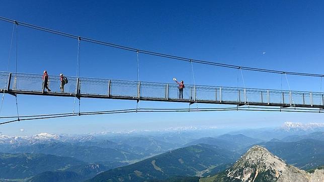 Planai Bahnen/Gery Wolf El glaciar de Dachstein era ya una de las atracciones más populares de los Alpes, en especial el mirador Sky Walk, de por sí vertiginoso, con 250 metros de caída. Sin embargo, ahora han doblado la apuesta con la plataforma y el puente colgante, de cien metros de largo, cerca de la localidad de Schladming. «Los visitantes pueden experimentar la impresionante sensación de quedar suspendidos sobre las rocas, con la mirada puesta en los Alpes», dijo en la inauguración Karl Höflehner, director técnico del proyecto.