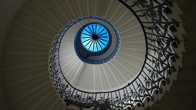 Jack Malvern La Casa de la Reina fue construida en 1616 por el arquitecto Iñigo Jones para el rey Jacobo I, como casa para su consorte, Anna de Dinamarca. Sin embargo, la reina murió antes de que se terminara la villa. Las obras de construcción se suspendieron y se volvieron a empezar un decenio más tarde por el rey Carlos I. La que vemos es una de las primeras escaleras en espiral geométrica en Gran Bretaña. La balaustrada de hierro se decoró con flores. Aunque se la conoce como «Escalera del tulipán», se piensa que en realidad son flores de lis, el emblema de la familia Borbón de la que la reina Enriqueta María (esposa de Carlos I) era miembro. La escalera no posee un soporte central. Sus peldaños se encuentran en voladizo y apoyados desde las paredes.