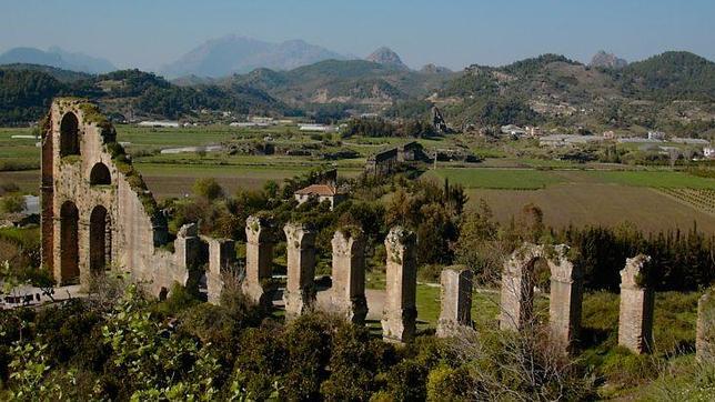Aspendos es una antigua ciudad greco-romana, a unos 45 kilómetros al este de la actual ciudad de Antalya. Esta urbe fue muy importante en época romana y en ella se encuentra el acueducto y el teatro, uno de los mejor conservados del mundo romano, construido bajo el emperador Antonino Pío.