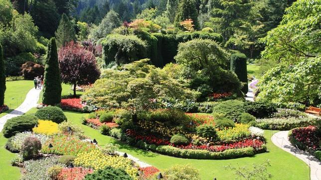 La belleza de los jardines Butchart tiene nombre femenino. En 1904, Jennie Butchart decidió embellecer la antigua cantera de piedra caliza abandonada que había explotado su marido para la producción de cemento en su fábrica. Empezó poco a poco. Primero unas plantas, luego unos rosales y así, sin parar, creó uno de los jardines más bellos y coloridos de Canadá, en Brentwood Bay.