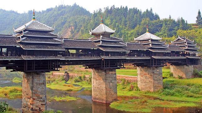 Gill Penney El puente Chengyang, situado en la localidad china de Sanjiang, es uno de los puentes «del viento y la lluvia» construidos por los dong en esa región de China para, como su nombre indica, proteger a sus habitantes del viento y la lluvia.