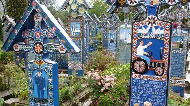 ABC Aunque en Europa la muerte es un momento de tristeza, el artesano Stan Ioan Patras creó, después de la Segunda Guerra Mundial, uno de los lugares más pintorescos de Rumania: el cementerio alegre de Sapanta, concebido como una explosión de colores, con estatuas y cruces pintadas con flores y escenas cotidianas que representaran algo simbólico de la vida del fallecido.