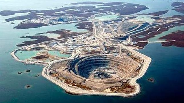 La mina de diamantes Diavik está a unos 300 kilómetros al norte de Yellowknife en Canadá. Se compone de tres agujeros o pozos de kimberlita asociados con el campo de kimberlita Lago de Gras y está situada en una isla de 20 km² del lago de Gras. En ella se producen 8 millones de quilates de diamantes al año. Su tamaño es tan grande y la zona tan remota que hasta tiene su propio aeropuerto con una pista lo suficientemente grande como para acomodar un Boeing 737.