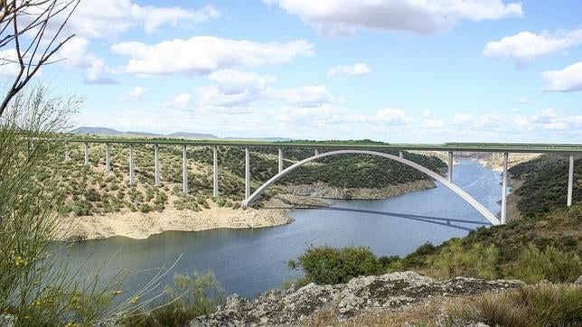 Ubicado en la Línea de Alta Velocidad Madrid-Extremadura, el viaducto sobre el río Tajo en el embalse de Alcántara fue inaugurado en 2013 y tiene una longitud total de 1.488 m.