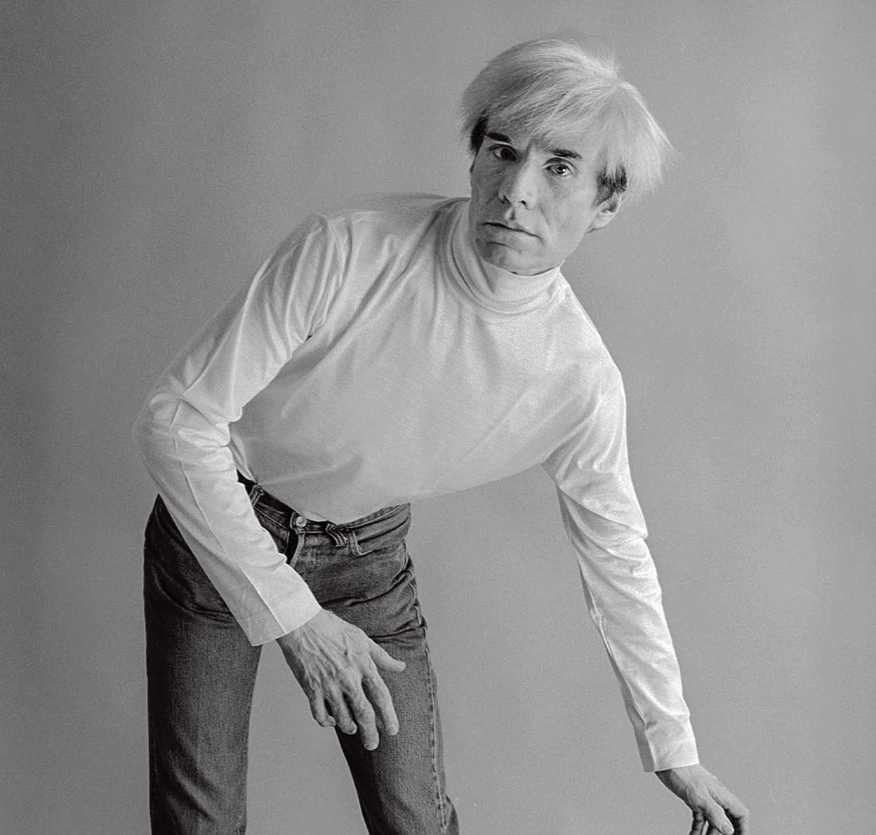 Peluca blanca, pantalón vaquero, jersey de cuello vuelto (blanco para la foto, pero negro en la mayoría de sus apariciones públicas)… El look de Warhol, que sustituyó sus trajes con corbata por un uniforme que simbolizaba mejor su condición de artista, consiguió traspasar las fronteras del tiempo y el género. Desde Diane Keaton hasta Steve Jobs, aquellas prendas se convirtieron en un símbolo de la sencillez intelectual, a pesar de la excentricidad que se atribuye a Warhol.